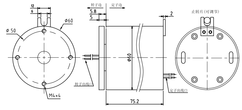如圖所示:將導電環裝在傳動軸需要的位置,用轉子上四個 |